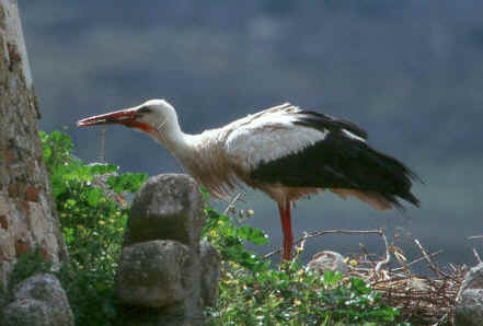 nests can be seen on rooftops, towers, chimneys, telephone-poles,